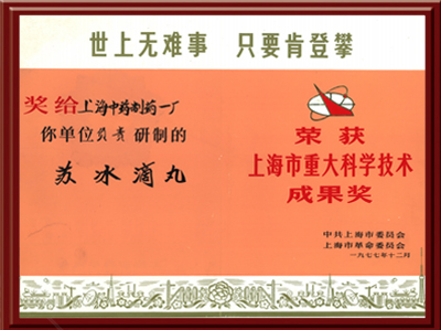 苏冰滴丸荣获上海市重大科学技术成果奖