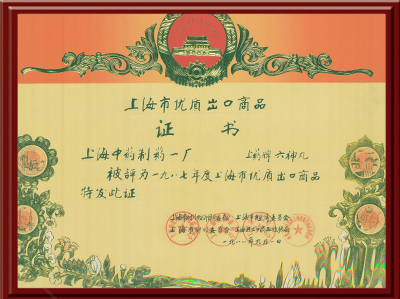中国·ok138(太阳集团)牌六神丸被证为一九八七年度上海市优质出口商品