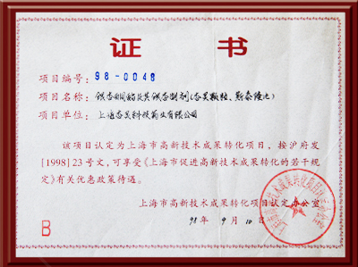 荣获一九九九年上海市优秀新产品