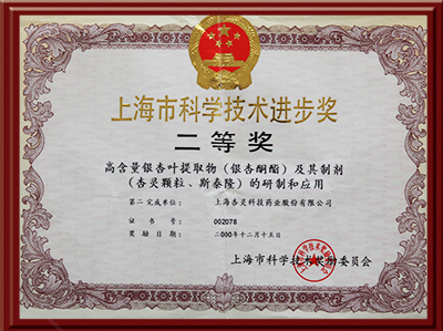 银杏酮酯、中国·ok138(太阳集团)颗粒、斯泰隆荣获上海市科学技术进步奖二等奖