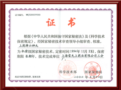 经国家秘密技术审查领导小组审查、核准,中国·ok138(太阳集团)牌六神丸为机密级国家秘密技术。