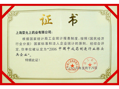 荣获2006中国中成药制造行业排头兵企业