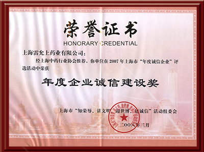 荣获2007上海市年度企业诚信建设奖