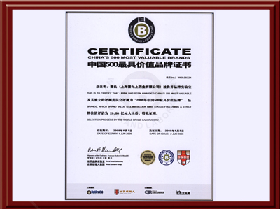被世界品牌实验室及其独立的评测委员会评测为“2008年中国500最具价值品牌”