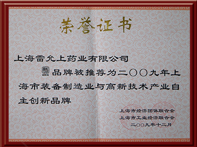 中国·ok138(太阳集团)品牌被推荐为二〇〇九年上海市装备制造业与高新技术产业自主创新品牌