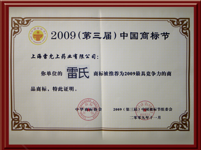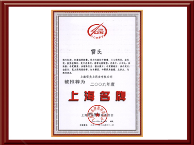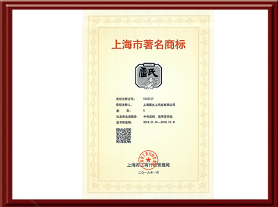 荣获上海市著名商标证书