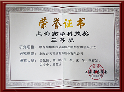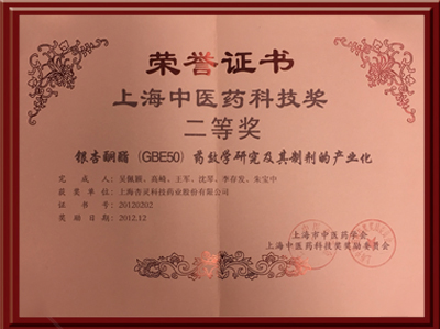 银杏酮酯药效学研究及其制剂的产业化项目荣获上海中医药科技奖二等奖