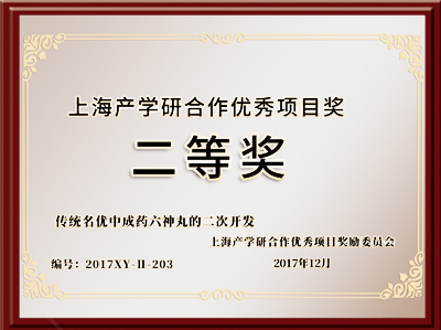 传统名优中成药六神丸的二次开发,荣获上海产学研合作优秀项目奖二等奖
