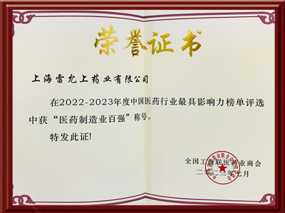 中国医药行业“医药制造业百强”称号